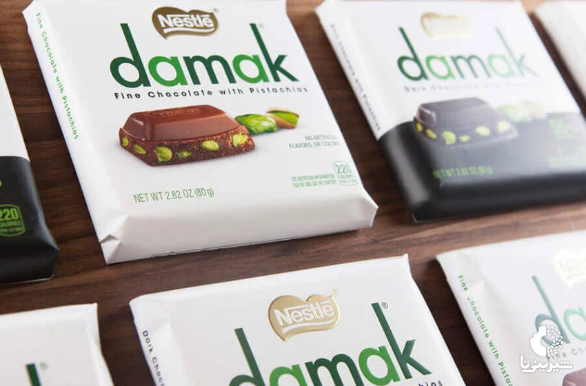 یکی از بزرگترین شرکتهای شکلاتسازی دنیا که شکلاتهای محبوبی را تولید میکند، شرکت نستله است. علاوه بر شکلات داماک، شکلاتهای کیت کت، اسمارتیز و بسیاری از شکلاتهای دیگر نیز محصول این شرکت هستند. شکلات داماک بهخاطر طعم و مزهی خاص خود بسیار پرفروش است و این شکلات به خاطر وجود پسته، دارای خواص زیادی هم هست.